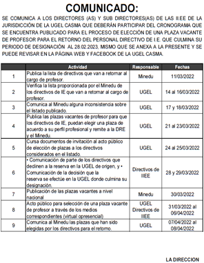 DIRECTORA DE LA UGEL CASMA MG. ROSA ZEGARRA YUI Y ESPECIALISTAS DEL MINEDU: TITO MEDINA WARTHON - DIRECTOR GENERAL DE DIGEIBIRA (DIRECCIÓN GENERAL DE EDUCACIÓN BÁSICA ALTERNATIVA, INTERCULTURAL BILINGÜE Y DE SERVICIOS EDUCATIVOS EN EL ÁMBITO RURAL) Y GINA ORÈ AYALA - COORDINADORA TERRITORIAL DEL MINEDU, VIENEN REALIZANDO VISITAS DE MONITOREO A DIFERENTES II.EE. DE NUESTRA JURISDICCIÒN.