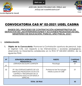 BASES DEL PROCESO DE CONTRATACIÓN ADMINISTRATIVA DE SERVICIOS DE LAS INTERVENCIONES Y ACCIONES PEDAGÓGICAS DEL MINISTERIO DE EDUCACIÓN, PARA EL AÑO FISCAL 2025.